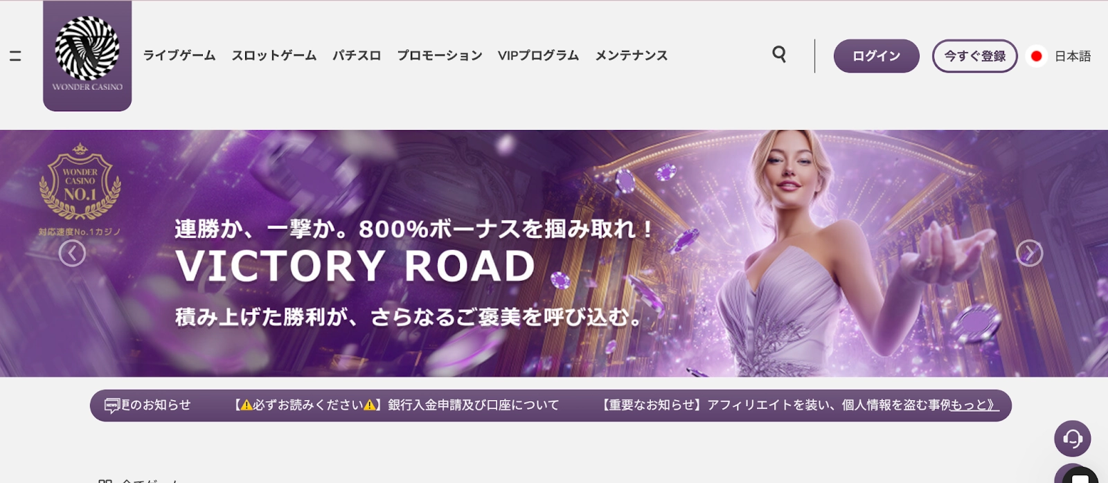 | 公式サイト | casino-wonder.com |